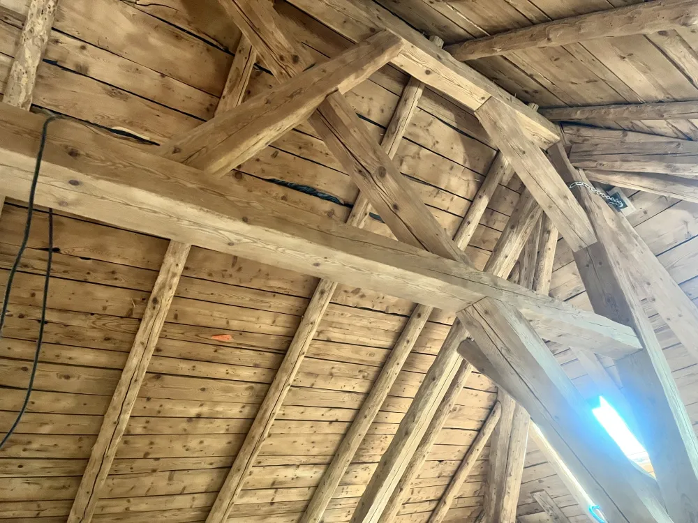 Nous venons de réaliser un chantier de plus de 600 m² de sablage intérieur de charpente, démontrant notre capacité à intervenir sur des surfaces importantes tout en garantissant un travail soigné, homogène et respectueux du bois.